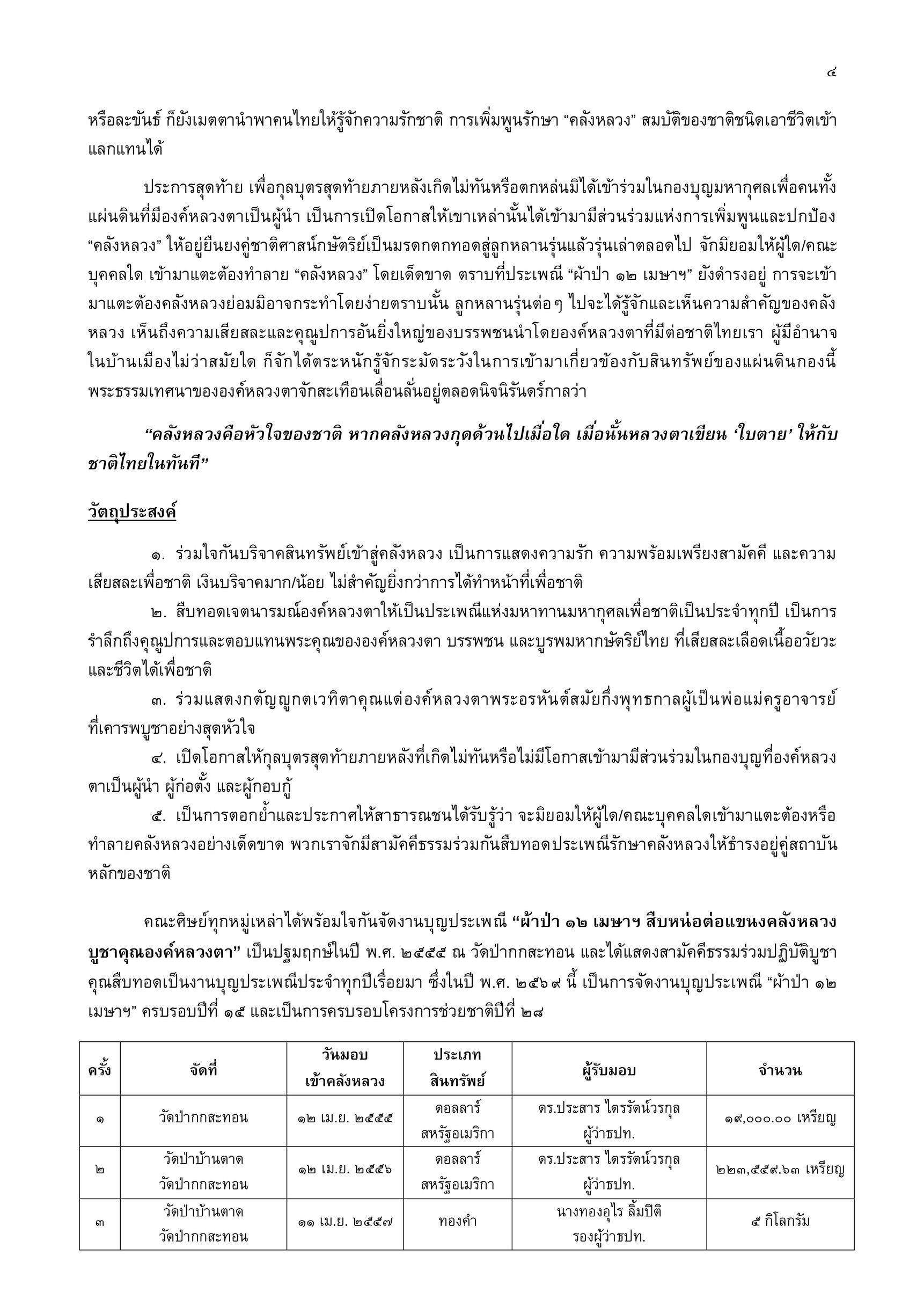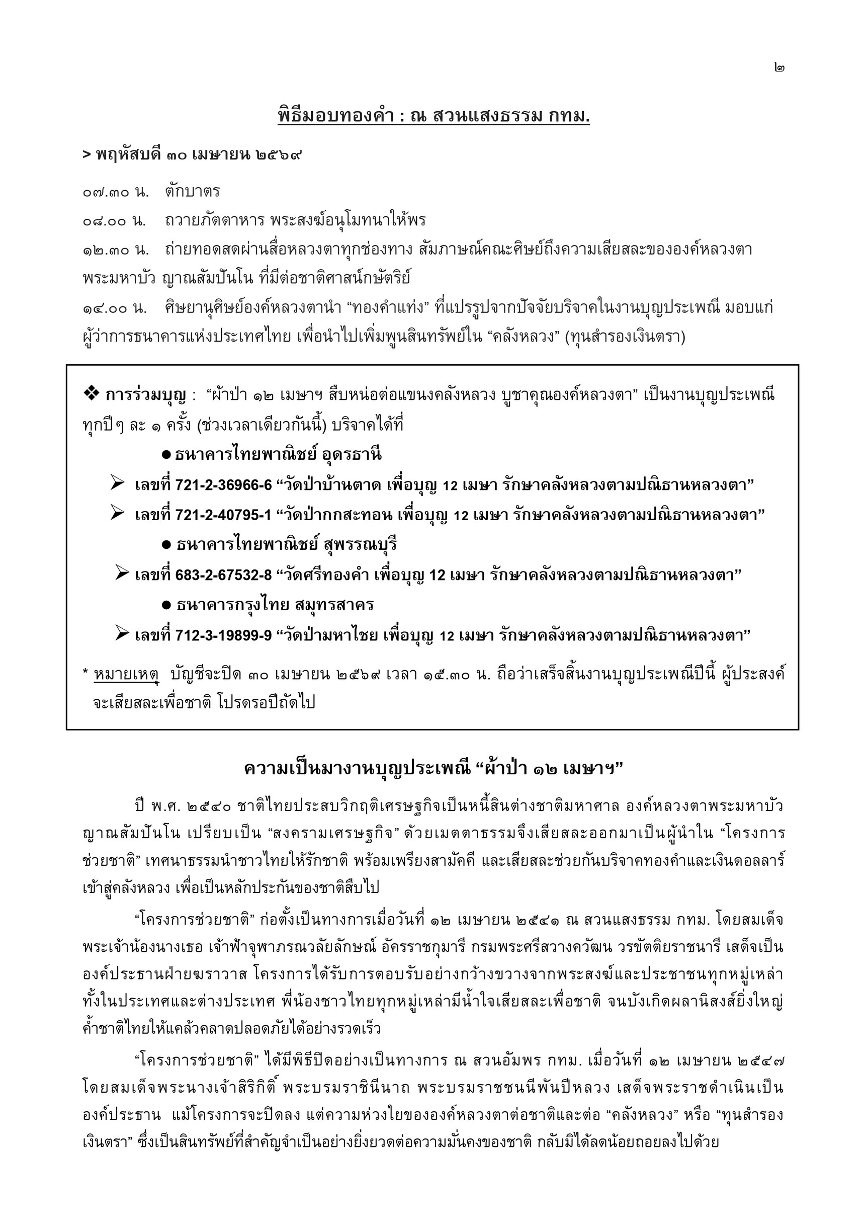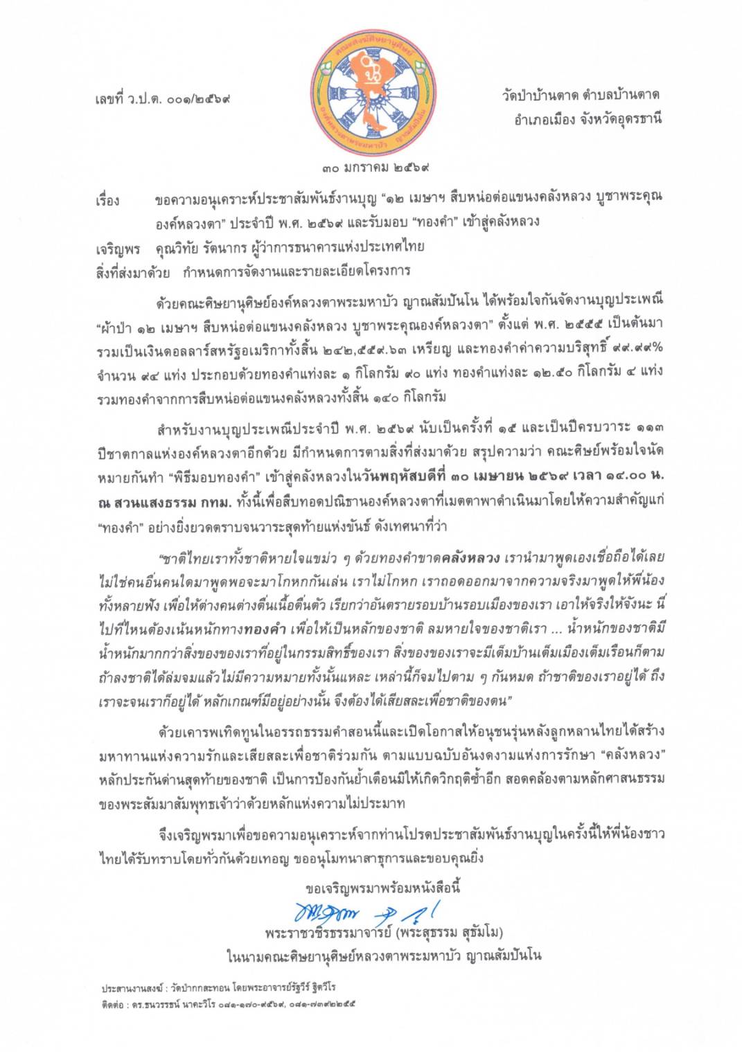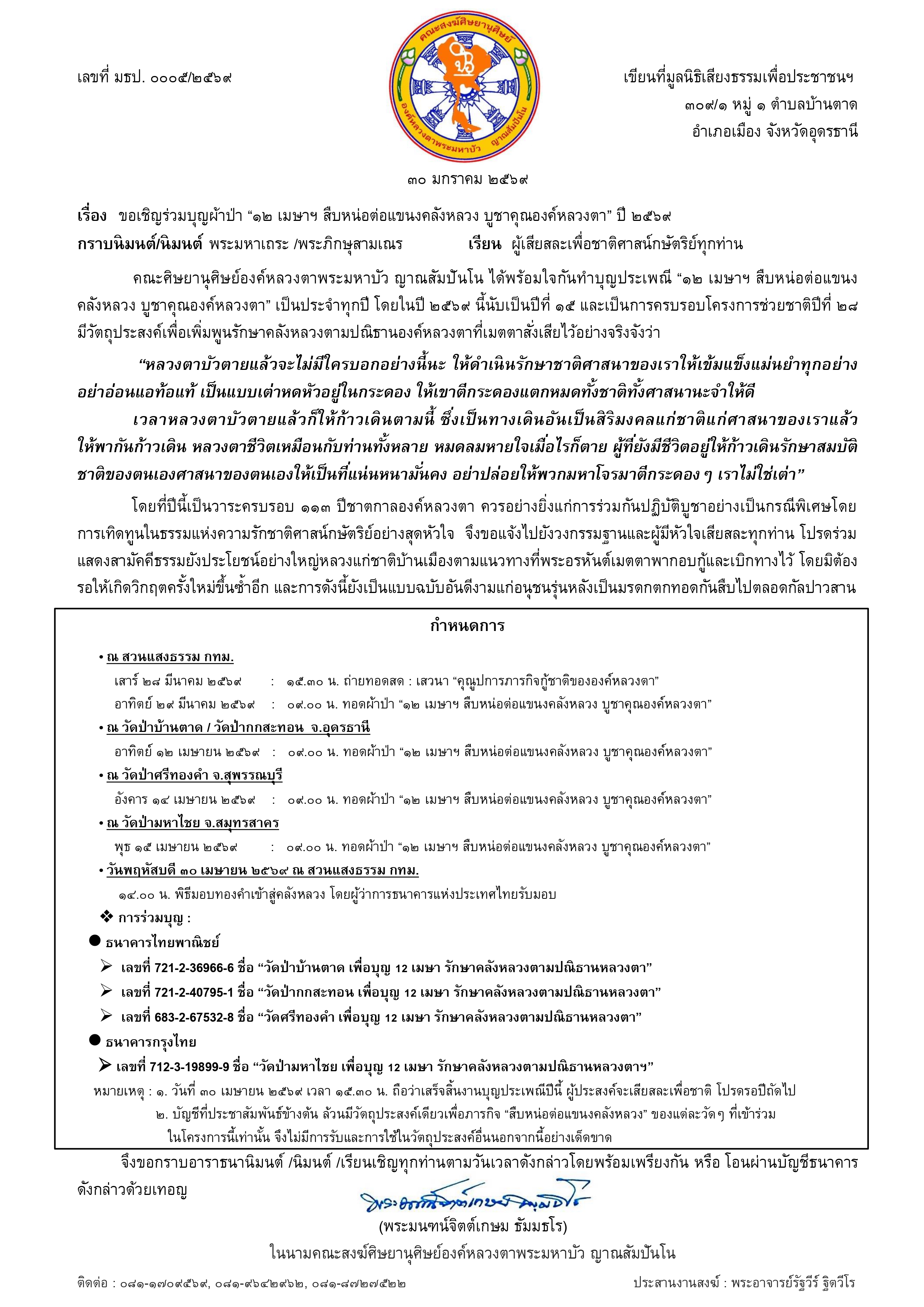 | งานบุญประเพณีปีที่ ๑๕ "ผ้าป่า ๑๒ เมษาฯ สืบหน่อต่อแขนงคลังหลวง บูชาคุณองค์หลวงตา" ในวาระ ๑๑๓ ปีชาตกาล |